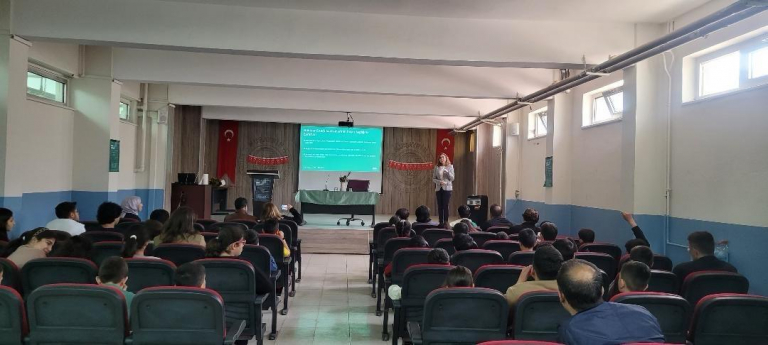 Söyleşide, nükleer enerjinin sunduğu fırsatlar ve beraberinde getirdiği riskler ele alınmış; öğrencilerle verimli bir bilgi paylaşımı gerçekleştirilmiştir.